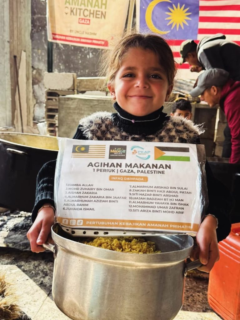 Di tengah-tengah kemusnahan dan kehilangan, Amanah Prihatin tampil dengan penuh kasih sayang dengan mengedarkan makanan yang baru dimasak kepada keluarga yang dilanda perang di Al Sabra, Gaza. Detik-detik yang dirakam dalam gambar ini menggambarkan bukan sahaja makanan yang dikongsi, tetapi juga maruah, harapan, dan peringatan bahawa kemanusiaan masih berdiri bersama Gaza.
